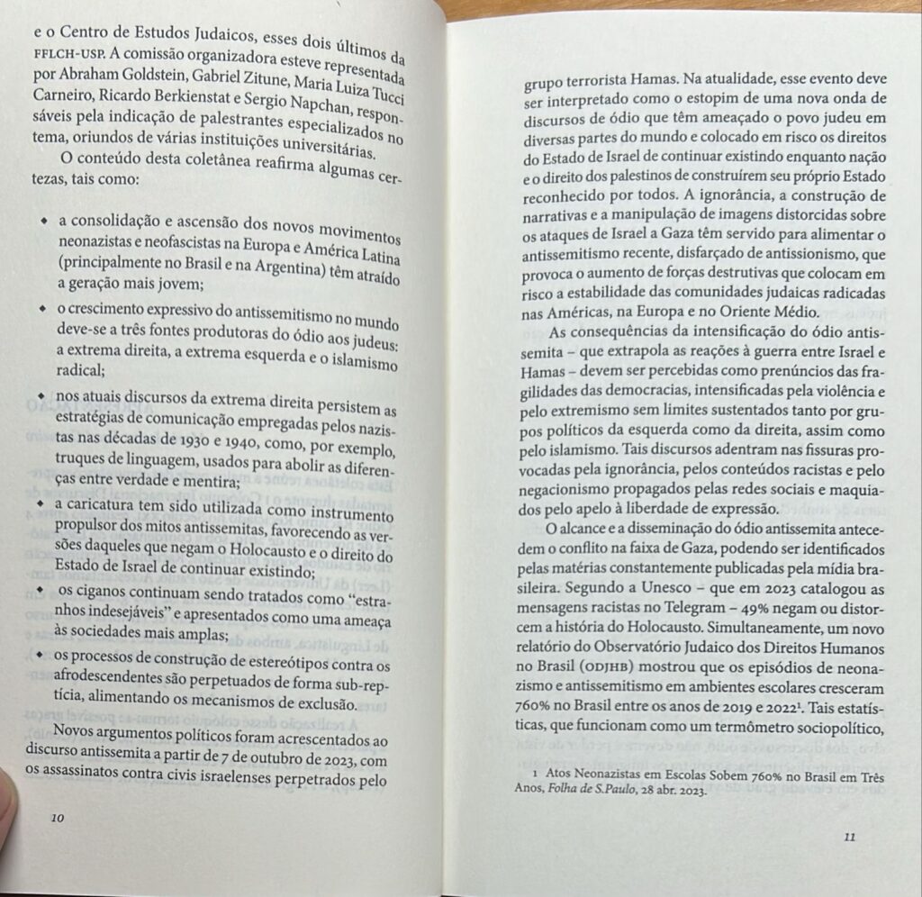 Notei e apontei nas falas dos quatro autores presentes um “esquecimento” dos discursos de ódio direcionados aos árabes e islâmicos de modo geral, porque hoje, graças a uma verdadeira diáspora provocada pelas guerras promovidas por Israel e EUA no Oriente Médio, os árabes islâmicos são o “judeu errante” de nossa época, a massa de imigrantes refugiados na Europa e alvo prioritário da extrema direita e do ódio como instrumento engajador e aliciador para discurso deles.