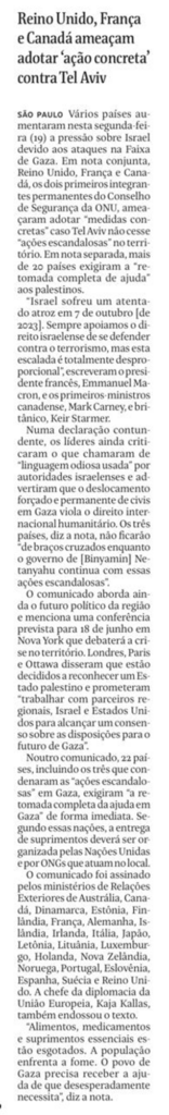 Reino Unido, França e Canadá ameaçam adotar ‘Ação Concreta’ contra Tel Aviv !