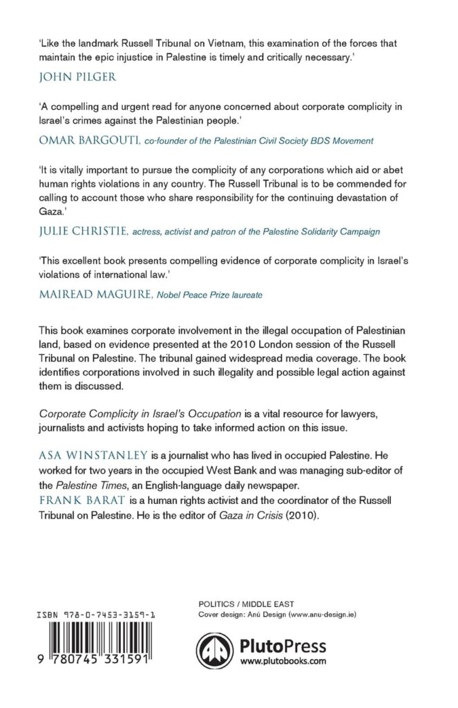 Examinando o envolvimento de empresas na ocupação ilegal de terras palestinas por Israel, o tribunal de 2010 gerou ampla cobertura da mídia. O livro identifica empresas e corporações que participam de tal ilegalidade e são discutidas possibilidades de ação legal contra elas.